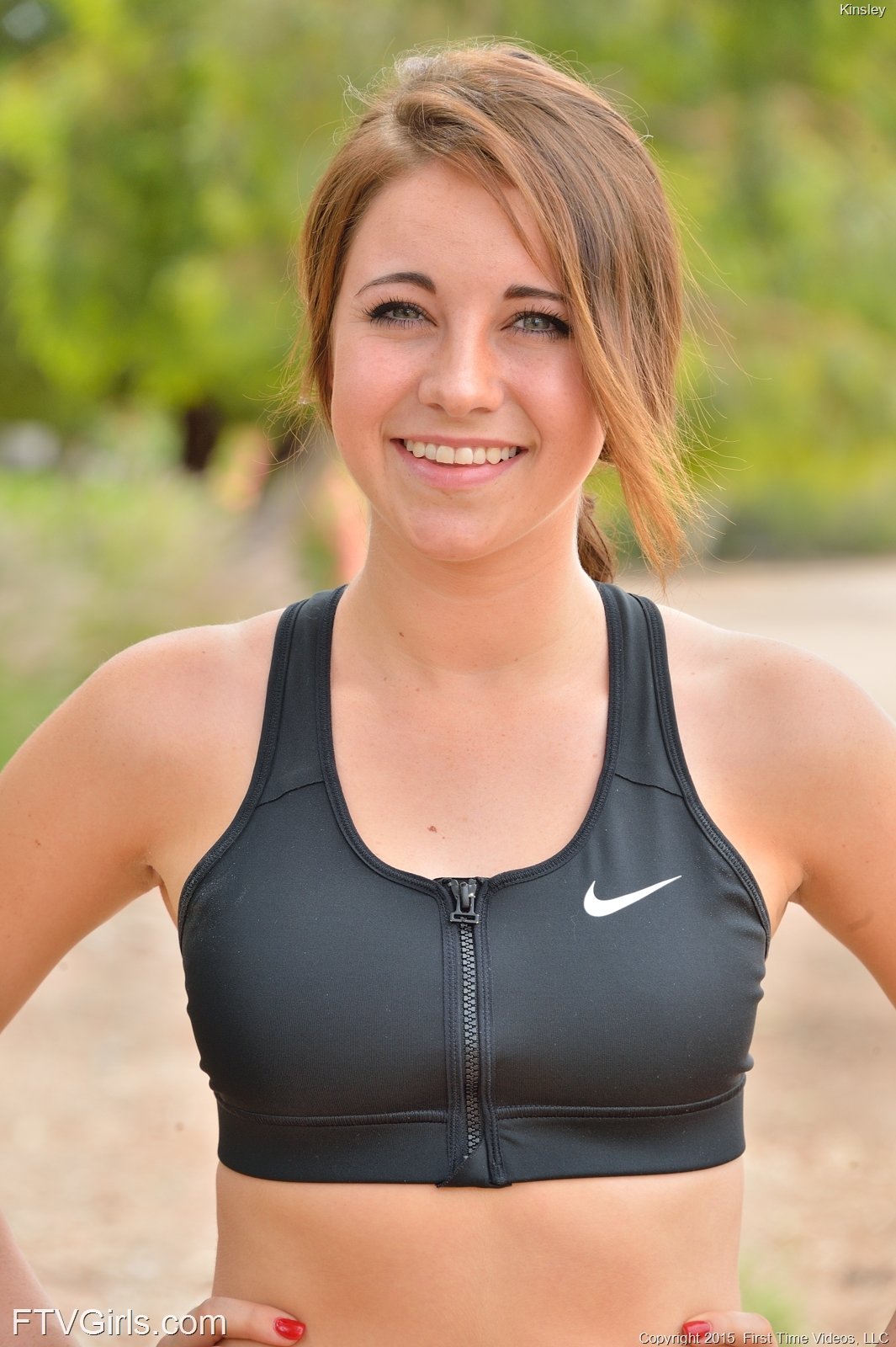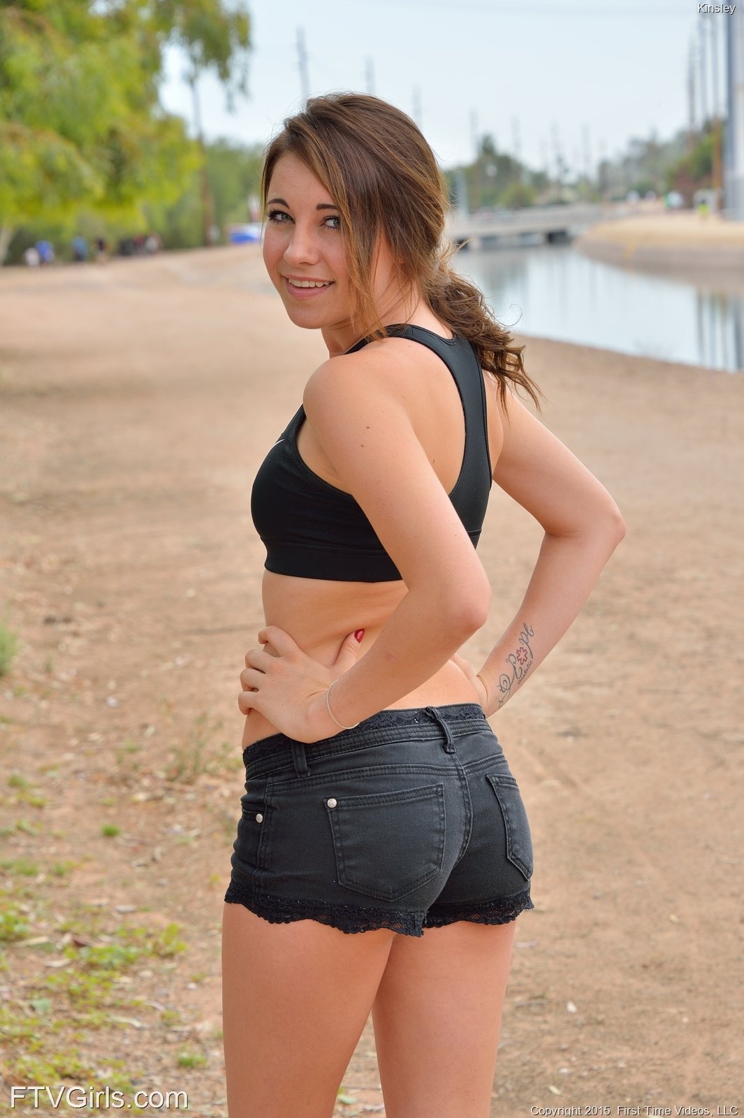FTV Girls catches vibrant young Kinsley out for a jog on the beach wearing a cute little sports bra and tiny shorts. Her boobs bounce with every stride, and she exudes erotic energy. You'll love her innocent smile, but you'll be even happier when she pulls down her shorts to show off her 'butt muscles.' She bends over and pulls her ass cheeks apart, giving a peek at her ripe pussy from behind. This open minded 18 year old brunette is ready for a good time, feeling frisky as she shows off her gorgeous firm tits. She lets him film her running, with her boobs flopping freely in the breeze. She has no hesitation with flirting topless in public, caressing her body and jiggling her boobs for the camera. Finally she gets completely naked, tossing her clothing aside even though strangers can see her in broad daylight. Despite her sweet cute look, she is one naughty teenager.