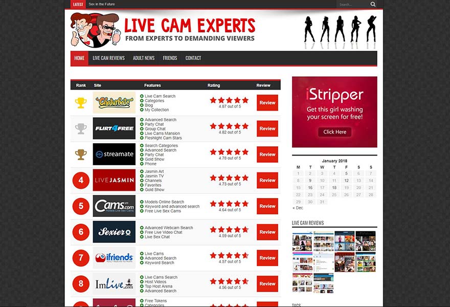 Livecam-Experts.com provides excellent reviews about the top 10 cam sites by explaining the quality of models each of these sites has, the video streaming, the selection of shows, the navigation, memberships prices and more. Their reviews are very honest, detailed and well written. They definitely know everything about the cam industry.