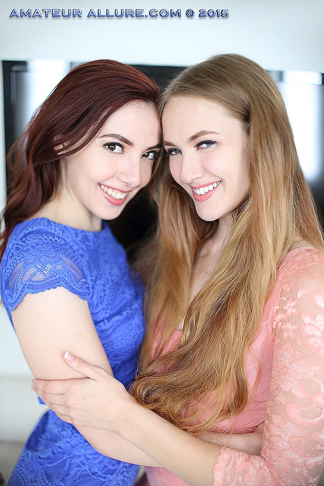 Ember and Samantha are two horny young hotties that love to fuck! They look adorable in short, sexy dresses and heels, one with auburn hair and brown eyes, the other with long blonde hair and blue eyes. They start the fun by making out and caressing each other, gently teasing before they begin the passionate pussy licking. Then they share a big hard cock, taking turns sucking his shaft and his balls at the same time. They pass it back and forth like a tasty popsicle. Then the other lucky guy joins in, fucking the blonde while she eats out the other girl's gorgeous natural snatch underneath her dress, as she continues her cock gobbling. The camera angles make you feel like you are part of the action in this groupsex video from Amateur Allure.