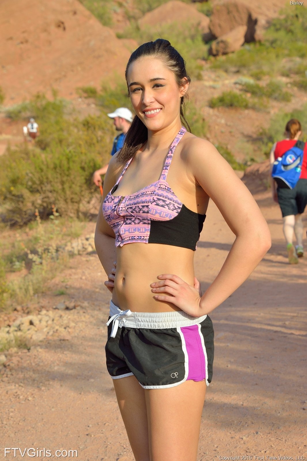 Bailey is a adorable teen girl. She is outside today working out in a cute little outfit. She has a cute little pair of shorts on. She exposes her small tits to the camera in public. She gives the camera another little shot of her pink pussy when no one is looking. She decides to jog down the trail a little bit to give a better look at her body. She stops off by a larger tree. She pulls out her favorite sex toy and proceeds to fuck herself with it. She loves it. She is about to make herself cum on the tree.