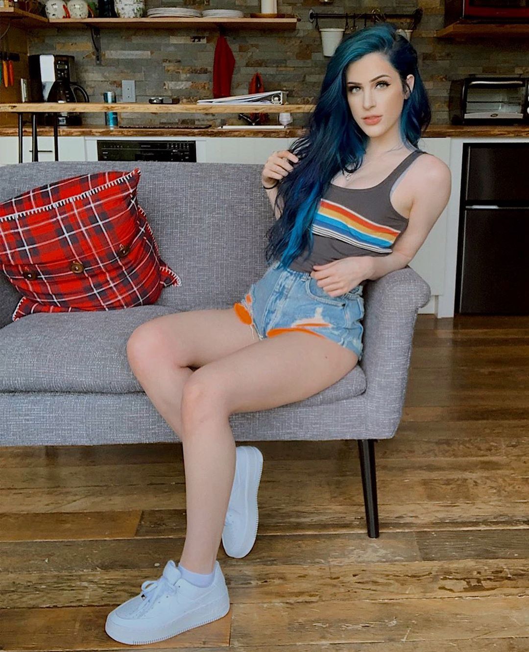 First, she has charming blue hair. She always looks so cute with her blue hairstyle. Especially in every picture she took.