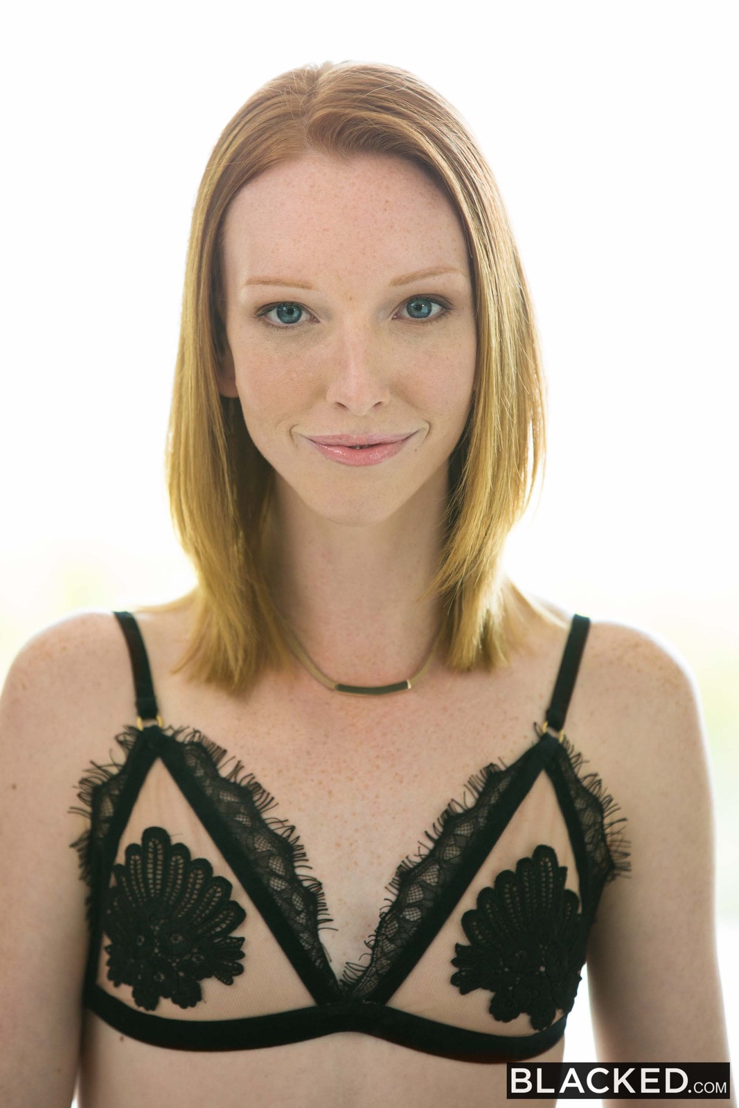 Redhead pale cutie Katy Kiss is with us today to take a giant black dick. She is in sexy black lingerie that shows off her nice pale skin. She shows her nice little tits and freshly shaved pussy. She starts sucking that big piece of black cock while rubbing his balls. She has to get it all nice and wet so it will fit inside of her pussy. She then starts riding that dick. She handles the motion because she can't take that big dick all at once. He bends her over and starts fucking her doggystyle next.