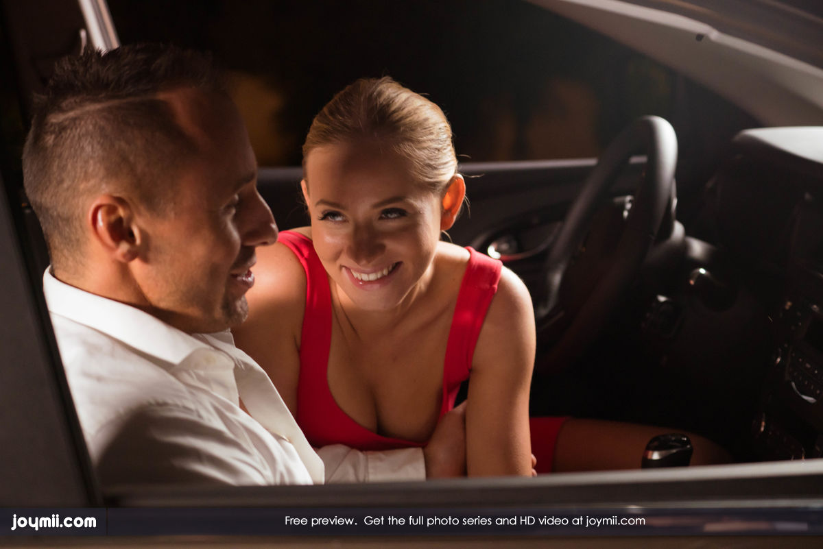 A smiling petite blonde girl is making her man horny as fuck in the car. She is taking control by driving. They stop on the side of the road in a remote location and she leans over they seat to suck his hard cock. She licks it up and down getting it all wet. Shen then jumps on it and starts riding it hard. Soon he starts fucking her from the reverse position too. They both get out of the car so he can fuck her from behind. He starts in and grabs that ass as his pushes his dick in harder and harder.