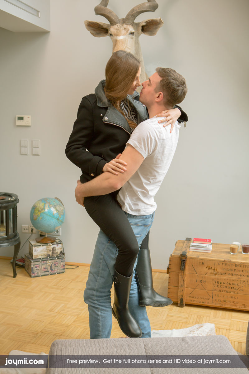 A beautiful brunette Josephine is shown just getting home. Rick picks her up in the air and is ready to fucker her brains out. She slips off her pants and Rick takes off her bra. She has an amazing set of tits and Rick starts licking on them slowly. She gets on her knees and starts sucking on Ricks big dick. He is loving every minute of it. She starts riding his cock like a pro, even going balls deep. Wow this girl can fuck. Rick has one more thing waiting for her. A nice shot of cum and she loves it.