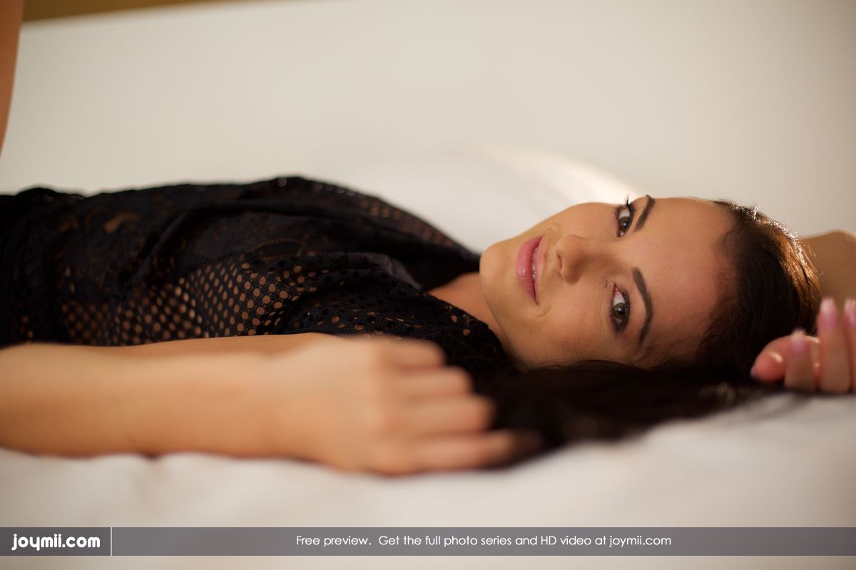A dark haired young playful girl Sapphira is home alone and in a kinky mood. She is wearing sexy black lingerie and loves to be a tease to the camera. She slowly lifts up her shirt and takes off her panties revealing her adorable black panties. She has some really perky tits and bends over to show that nice round butt. She then gets completely nude and starts rubbing on that pink pussy area. She then spreads her legs wide open revealing her nice fresh pink pussy. This girl is just wanting to be fucked right now.