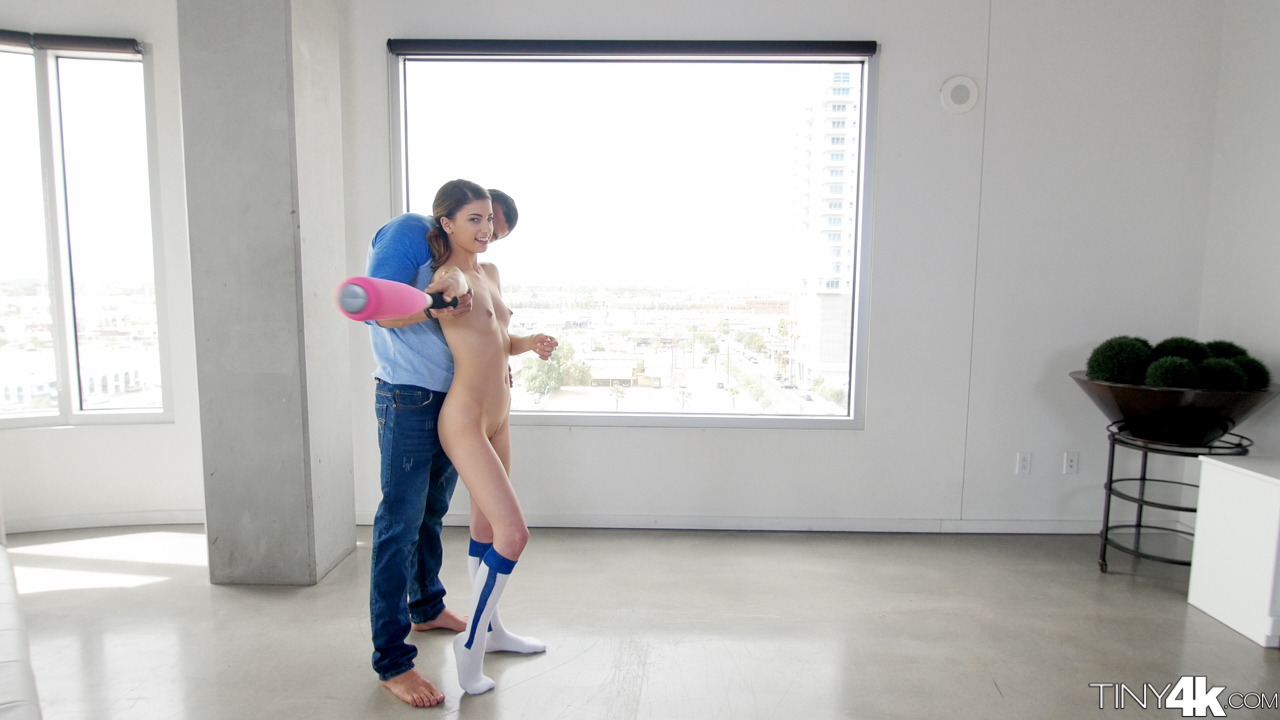Skinny teen babe Kristin Scott is getting lessons on how to handle a big stick. She is looking so good in her baseball uniform and pigtails, it's hard to resist your cuteness. Soon Kristin is on her knees and couldn't be happier with a big dick in her mouth, and then she begs to get her pussy stuffed and fucked hard, all before getting her pretty face and small chest covered in cum. She's only ever happy with a cock in mouth or when she's enjoying cam2cam masturbation
