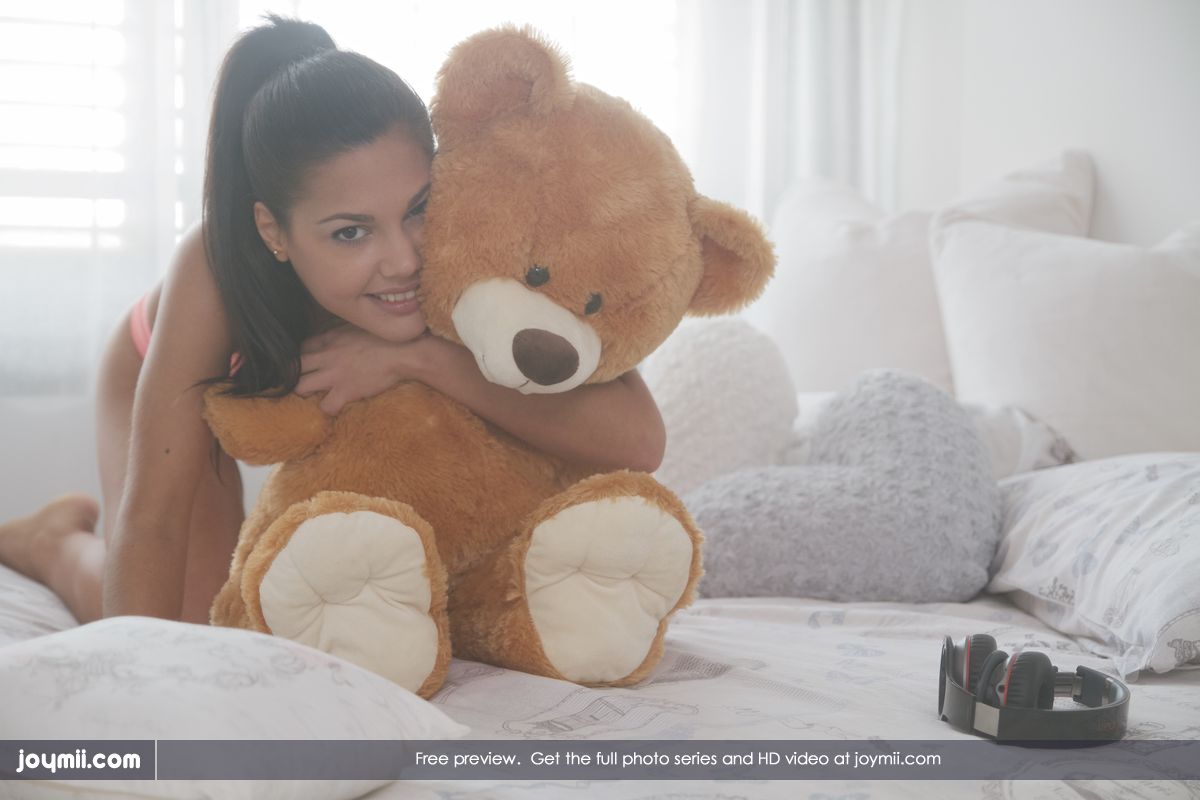 Apolonia is a cute little teen vixen. Today just happens to be her birthday and she would love nothing more than to show off her body. She just comes from a birthday party her parents through for her. She has a cute dress on but doesn't show off her body. It isn't long before she slips it off and is only wearing little thong panties. her ass is nearly flawless. She starts hugging on a big teddy bear. She pulls out a new sexy toy. She must have gotten it for her birthday because she was shy about using it.