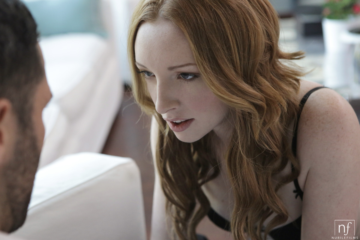 Pale adorable redhead Katy Kiss is about to pleasure her man today. She is wearing sexy black lingerie looking as hot as ever. She sits him down on the sofa and gets on her knees. She starts giving him an amazing blowjob. She strokes and sucks on his dick at the same time. He is hard as a rock now. He returns the favor and licks her pussy in all kinds of ways. She moans out in pleasure. He fucks her from behind while she has her ass up in the air. She loves it from behind. He goes balls deep inside of her.