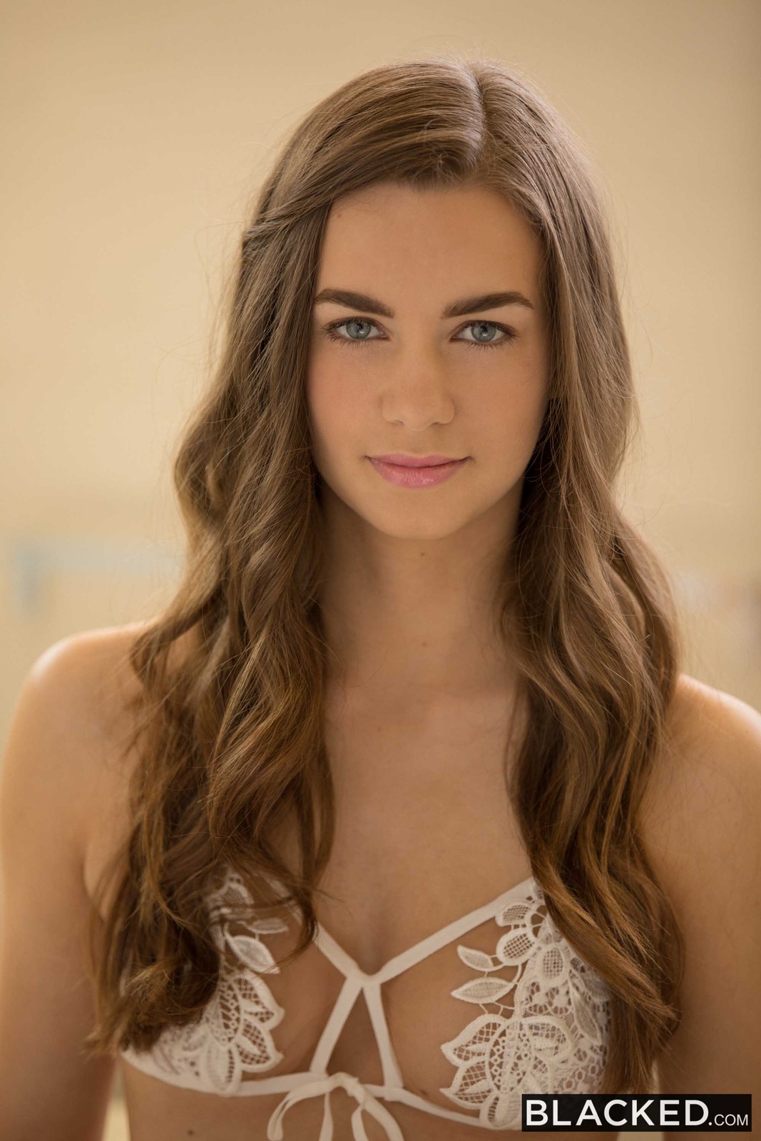 Skinny white babe Tali Dova has a huge smile on her face because she is about to be ravaged by two hung black guys. She is wearing sexy white lingerie looking as hot as hell. She is ready to jump right in and starts off by teasing her body. She can certainly handle to hung black dicks. She gets on her knees and starts to suck them one at a time. She can fit them in her mouth which is a real talent. It isn't long before they are taking turns poking her mouth and pussy at the same time. She loves every minute of it too.