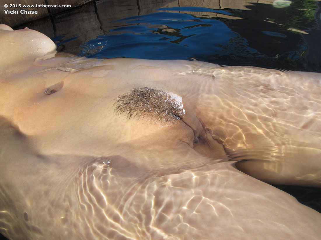 Vicki Chase was a dirty porn star who liked to get down. She showed up in a hot little bikini for this shoot. It didn't take her long to take off the top and bottom and show off her amazing tits and ass. She spread her cheeks wide and shows her pink crevice. It was really a site to behold. I handed her some anal beads and she loved this. She started inserting them slowly into her butt and pulling them out. The first time she did it she came all over the place. She started inserting them again to get herself to cum a second time.