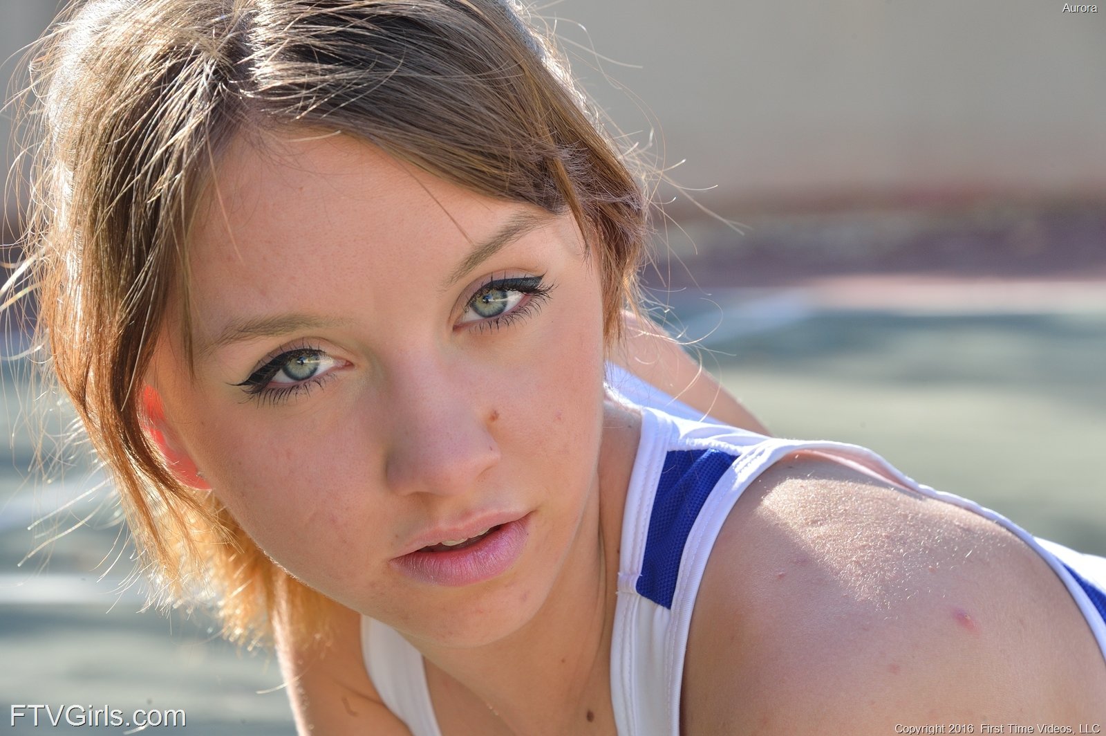 Aurora has been playing tennis all day and is tired. That is exactly when we show up. She know she is all sweaty and her pussy is soaked. She teases the photographer by lifting her short skirt. Her freshly shaved pussy is revealed and we are ready to go. While on the court she gets down on all fours with her nice ass up in the air. This girl really has a great little ass on her. She sticks one finger into her little ass then licks it clean. We go inside where we have a bunch of brand new sex toys.